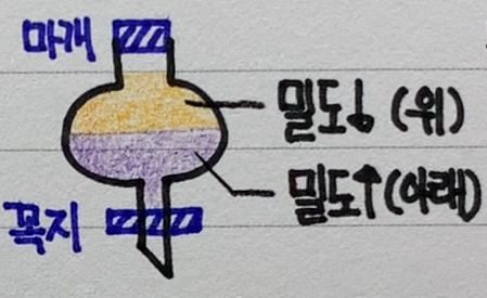 밀도가 큰 물질은 아래에