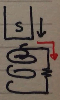 윗 부분에 S극을 유도하는 코일은